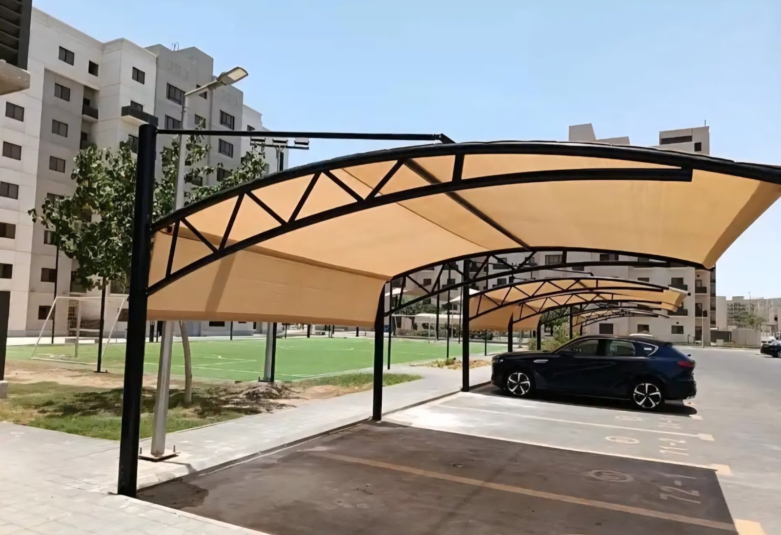 تُعد الخيار الأمثل لحماية السيارات من حرارة الشمس الشديدة والأمطار، وتُستخدم بشكل شائع في الفلل، الشركات، والعمارات السكنية.